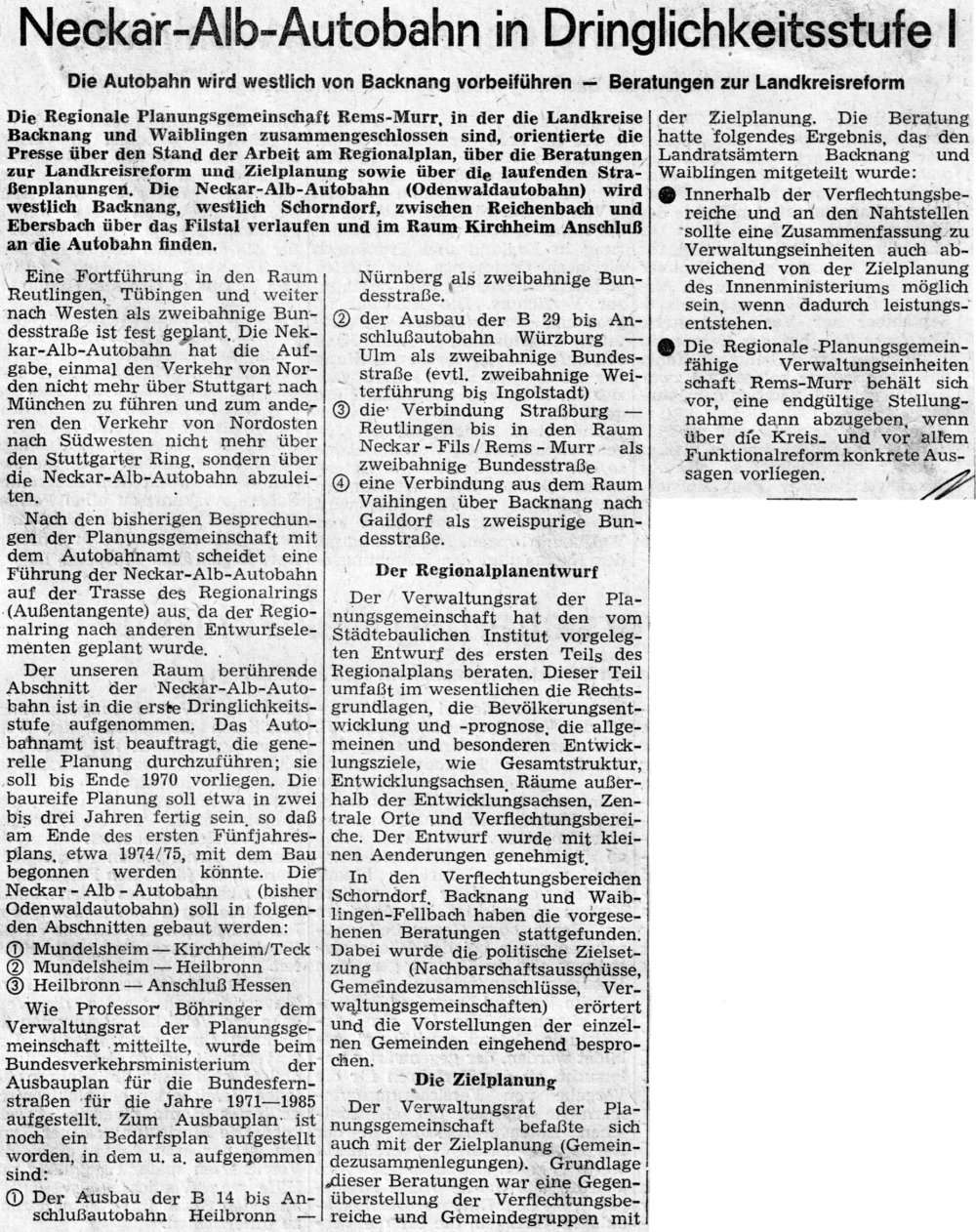 Quelle: Backnanger Kreiszeitung vom 20. Mail 1970.