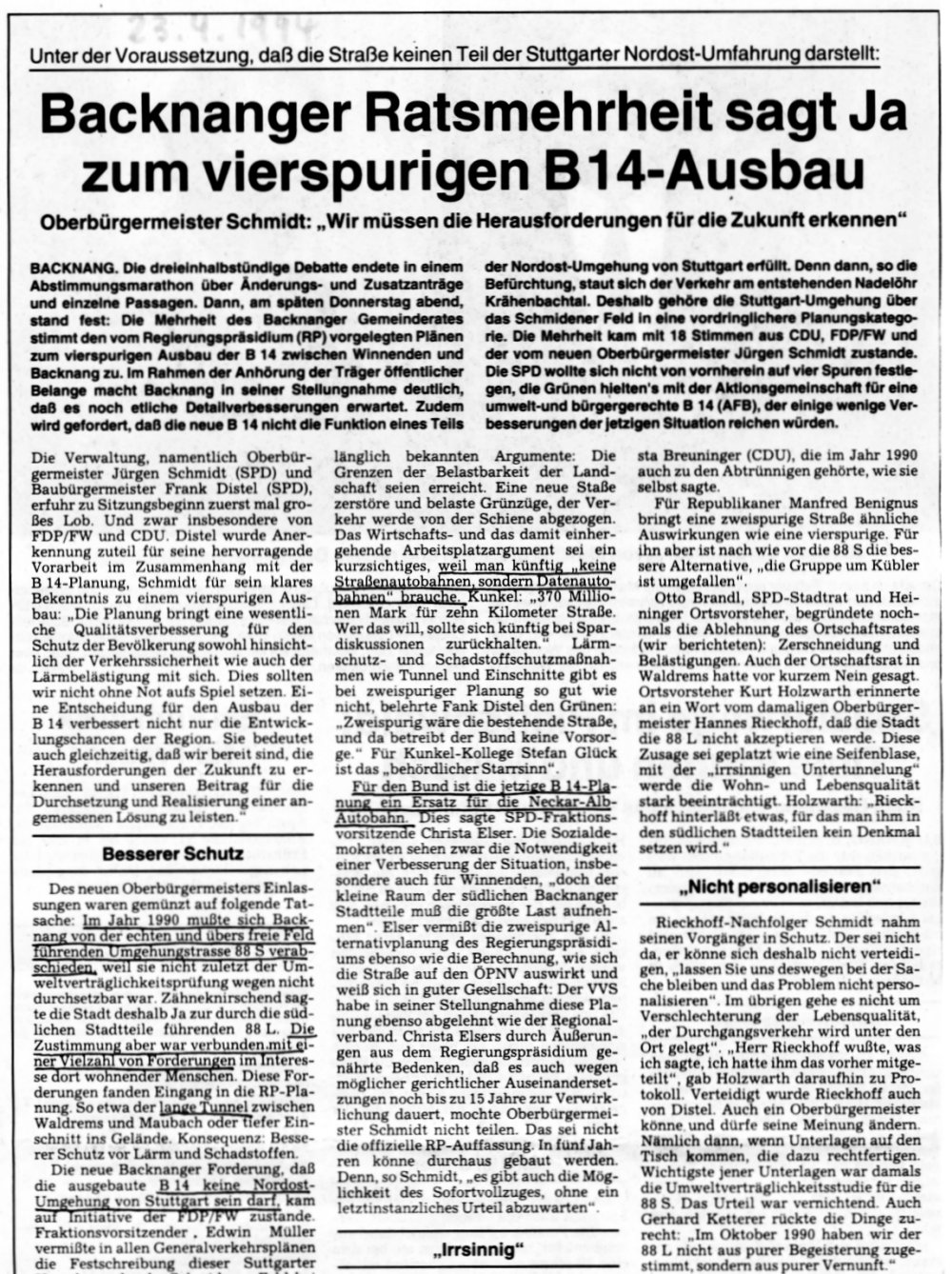 Quelle: Backnanger Kreiszeitung vom 23. April.