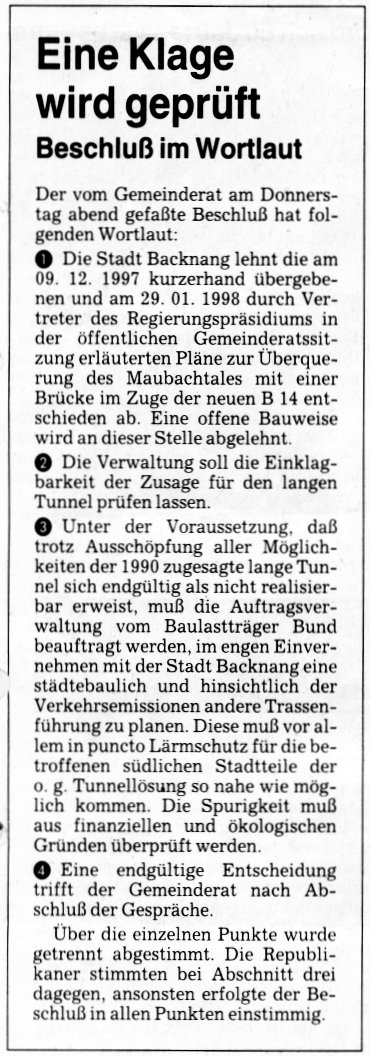 Quelle: Backnanger Kreiszeitung vom 21. Februar 1998.