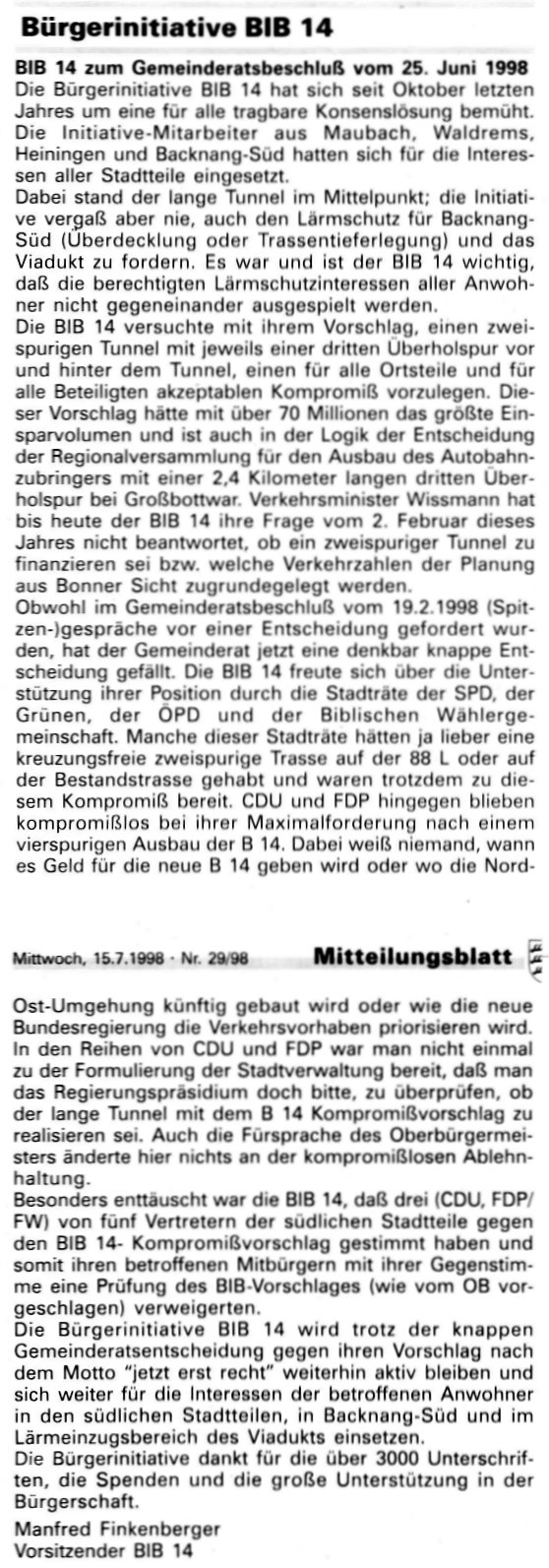 Quelle: Mitteilungsblatt Heiningen-Maubach-Waldrems vom 25. Juni 1998.