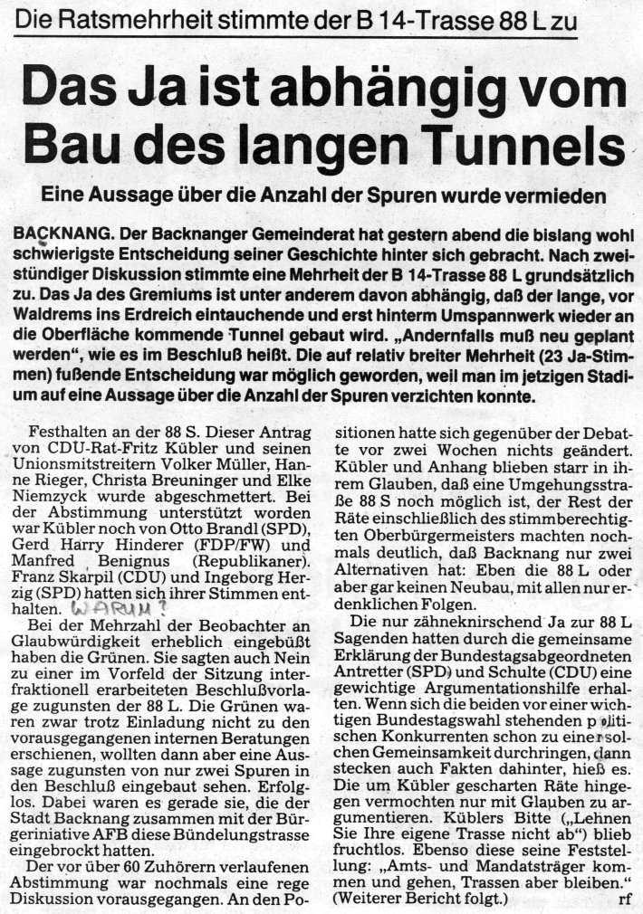 Quelle: Backnanger Kreiszeitung vom 12. Oktober 1999.