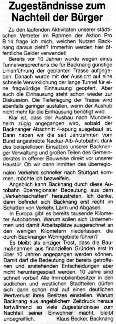 Quelle: Backnanger Kreiszeitung vom 11. Juli 2000.