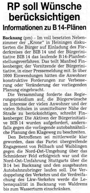 Quelle: Backnanger Kreiszeitung vom 4. November 2004.