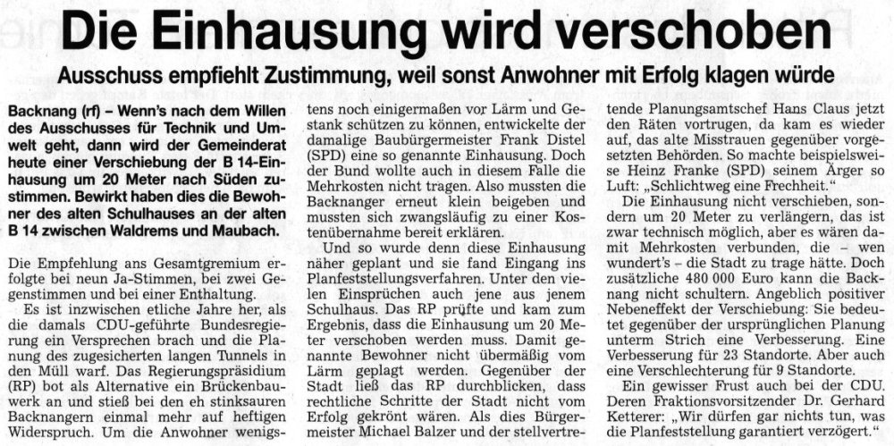 Quelle: Backnanger Kreiszeitung vom 21. April 2005.
