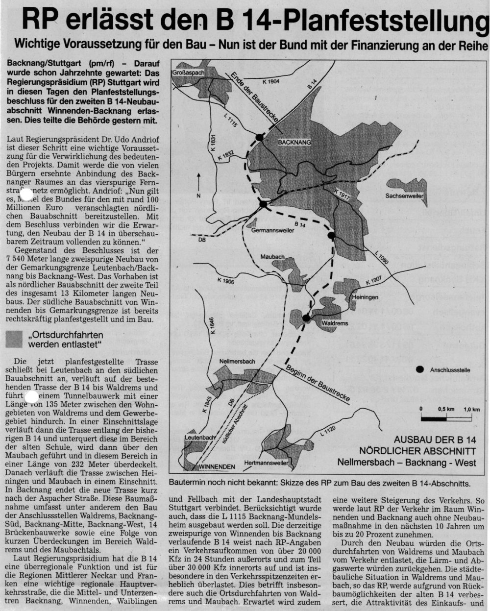 Quelle: Backnanger Kreiszeitung vom 22. November 2005.