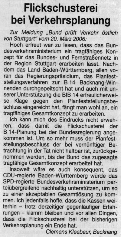 Quelle: Backnanger Kreiszeitung vom 22. März 2006.
