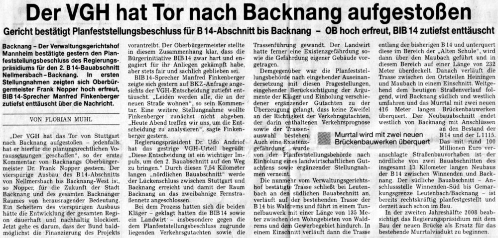 Quelle: Backnanger Kreiszeitung vom 18. Juli 2007.
