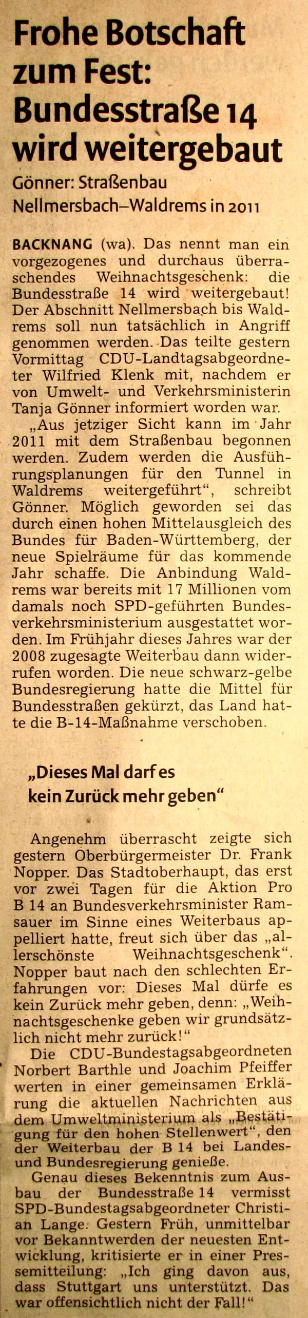 Quelle: Backnanger Kreiszeitung vom 24.12.010