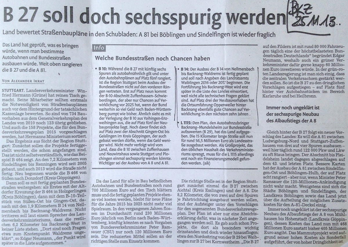 Quelle: Backnanger Kreiszeitung vom 25.11.013