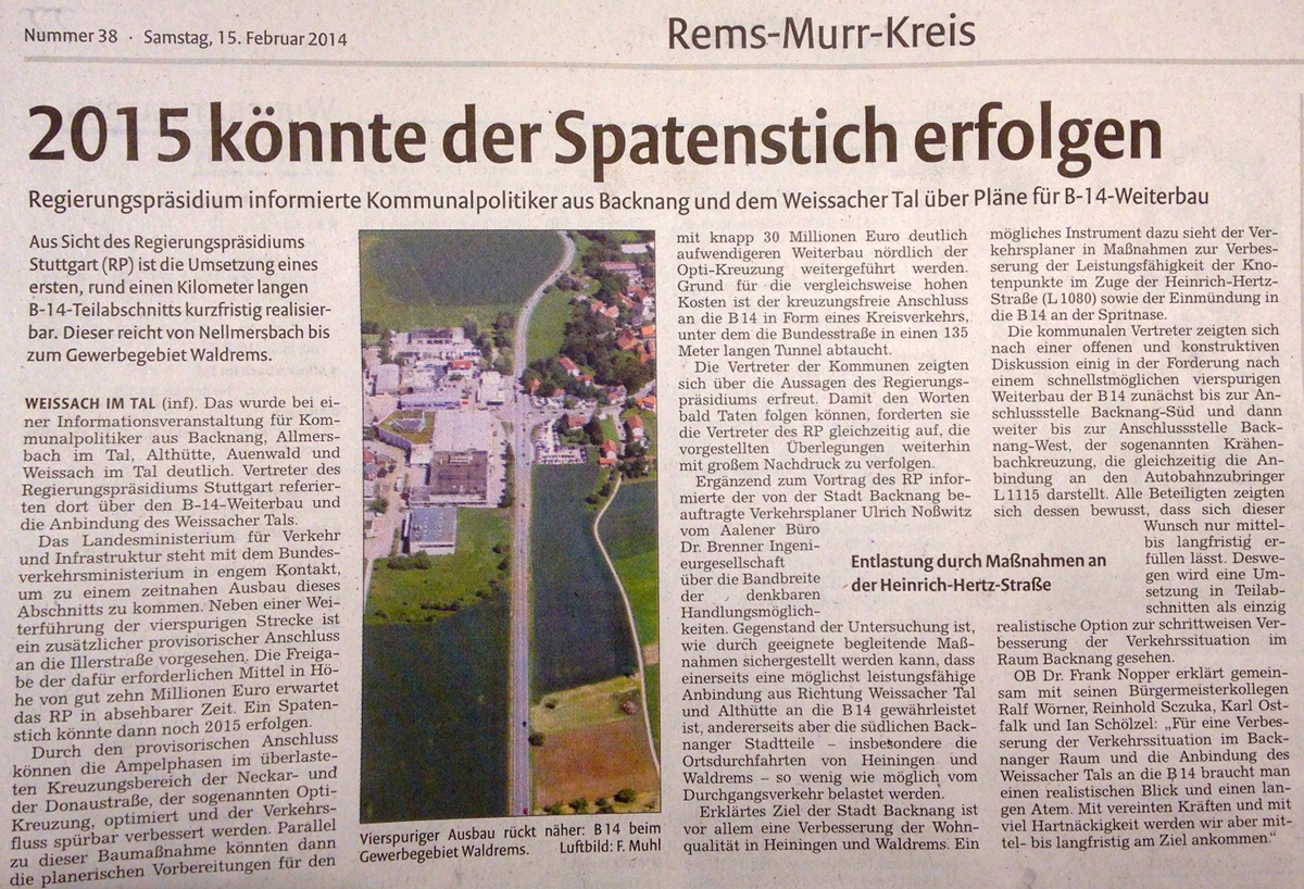 Quelle: Backnanger Kreiszeitung vom 15.2.014
