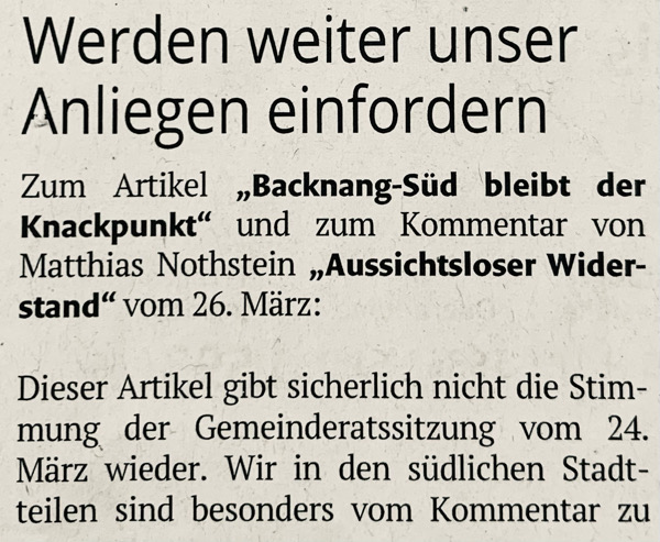 Quelle: Backnanger Kreiszeitung vom 2.4.2022